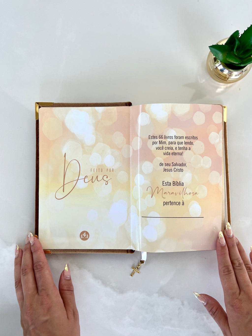 Feito em glitter coberto por pedrarias essa bíblia é digna de um reinado e sim você filha do Rei, com cantoneiras banhadas à ouro, acompanha pingente marcador de página e placa grande. (Escreva seu nome ou versículo).