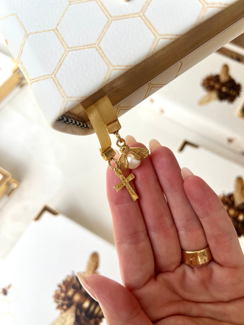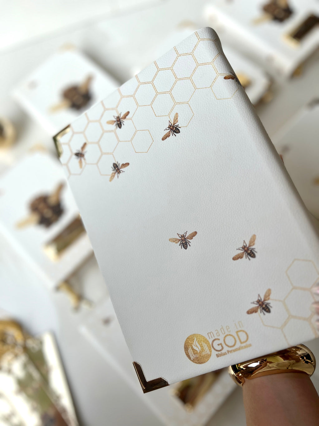 Combo Bíblia Courino Abelha na cor Branca + Cartela de índice + Plaquinha + 2 Pingentes