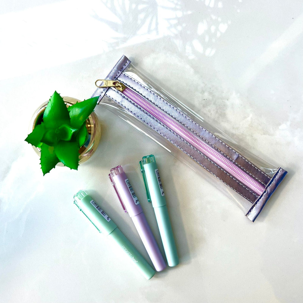 Acompanha 3 canetas marca texto em tons pasteis, não marca a folha, as cores das canetas vem sortidas.
