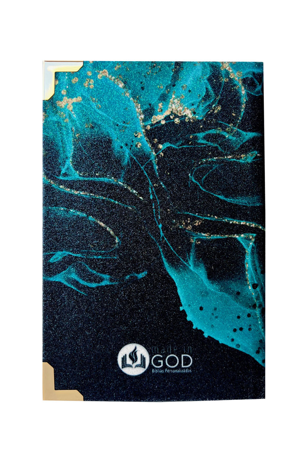 Bíblia personalizada com tecido em glitter estampado, com cantoneiras banhadas a ouro, fitinha de cetim e pingente de cruz combinando com a bíblia!